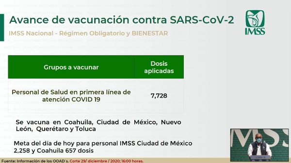 Respecto a los efectos secundarios registrados en personas que han recibido la vacuna, el titular del IMSS informó que menos del 1 por ciento ha presentado una reacción.