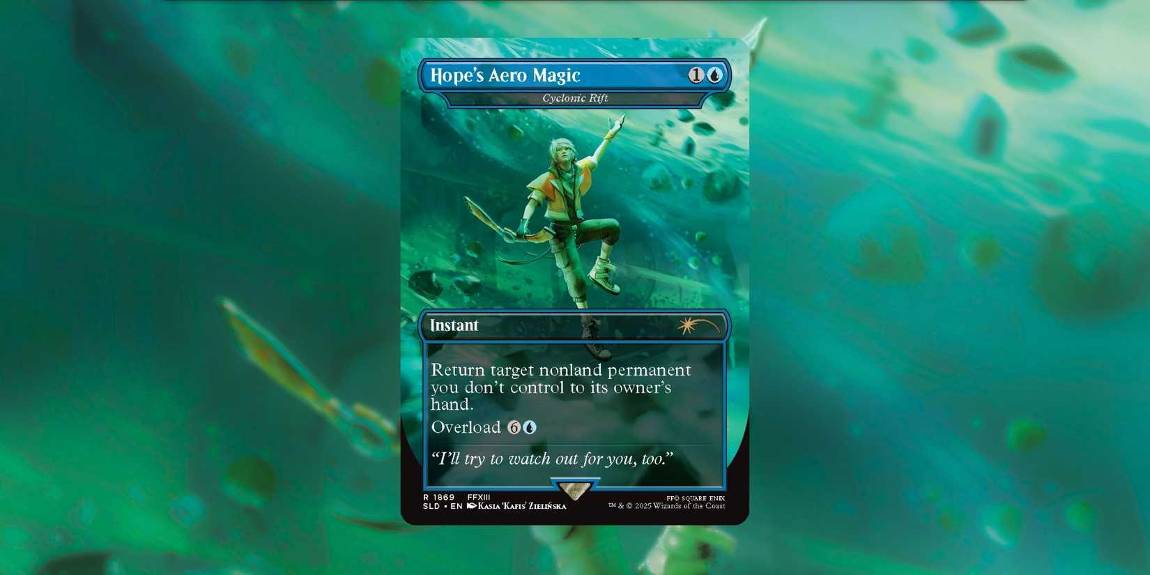 Ayer, Magia: la reunión anunció un nuevo Final Fantasy Secret Lair en su sitio web. En lugar de nuevas tarjetas originales, las cartas en estas Guaridas secretas son reimpresiones de existentes Magia tarjetas con nuevos nombres y obras de arte para adaptarse al Final Fantasy tema. Entre estas reimpresiones está la tarjeta Hope’s Aero Magic, una versión rediseñada del poderoso comandante de la grieta Cyclonic Cyclonic. La capacidad de sobrecarga de Cyclonic Rift obliga a todos menos a usted a recoger todos sus permanentes no terrestres, despejando el camino para sus ataques mientras confía a todos los demás probablemente por múltiples turnos.
