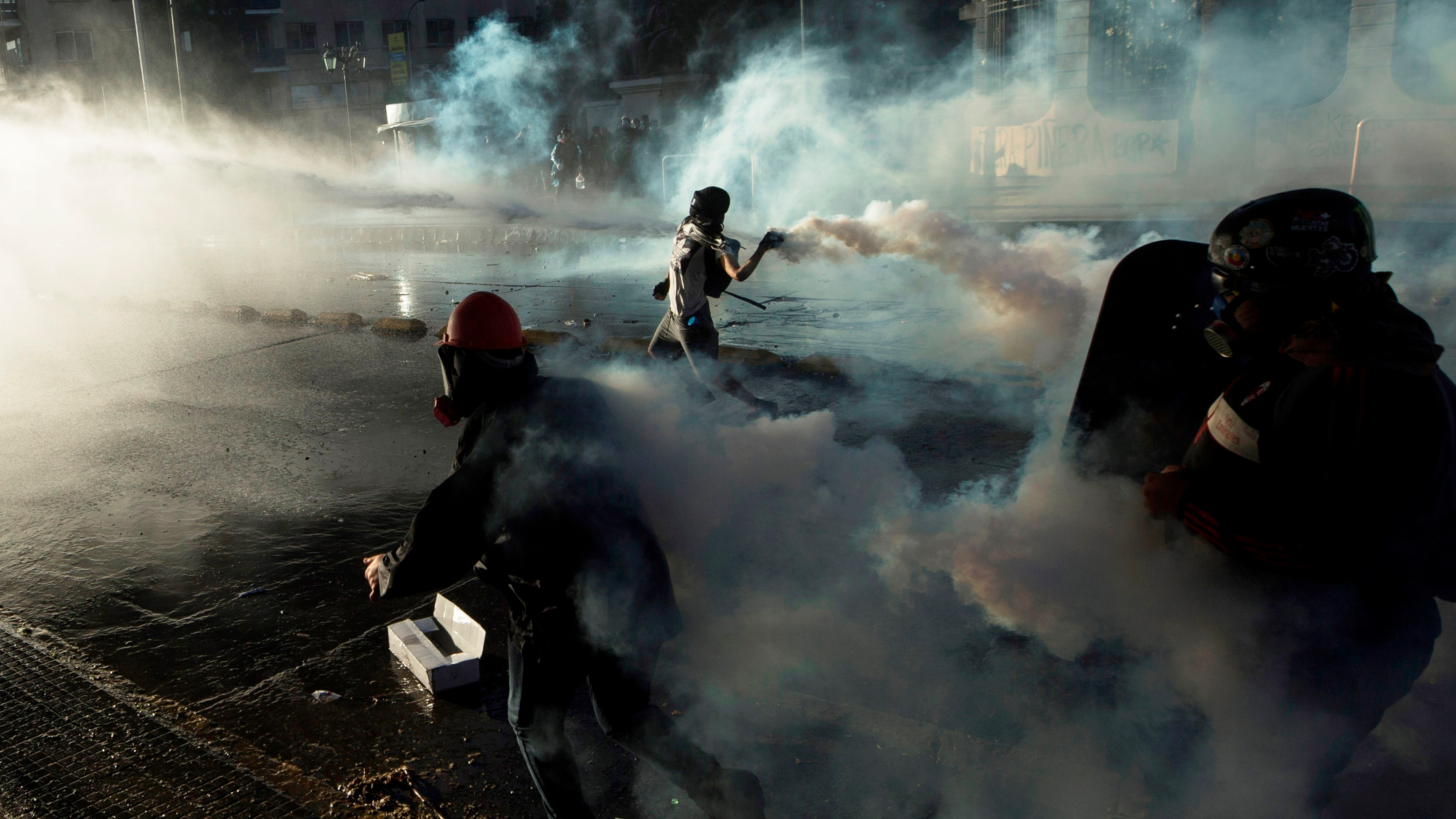 En el transcurso de la marcha a lo largo de todo la avenida y hasta llegar a Plaza Italia, punto neurálgico de las protestas y rebautizada por los manifestantes como “Plaza Dignidad”, hubo algunas escaramuzas y enfrentamientos entre manifestantes y policías.