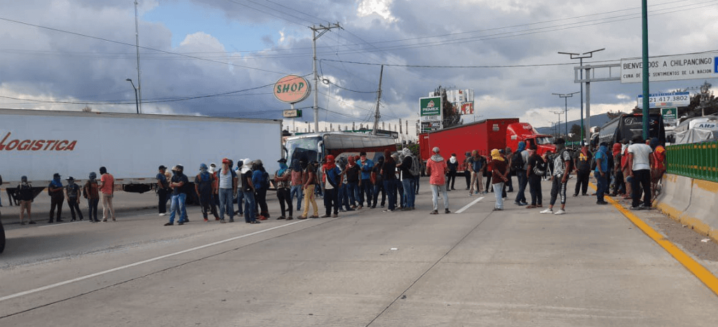 Normalistas de Ayotzinapa bloquean autopista del Sol