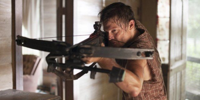 El cazador de ballestas de Reedus aparece por primera vez cuando Rick Grimes, de Lincoln, recién reunido con su esposa Lori (Sarah Wayne Callies) y su hijo Carl (Chandler Riggs) en las afueras de Atlanta, se encuentra con el paleto candente cuando emerge del bosque quejándose de un retén. contaminado por la mordida de un caminante.