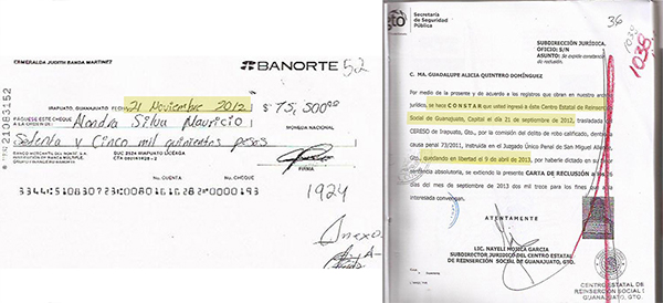 Sin embargo, el fraude contra la odontóloga ocurrió en noviembre de 2012 en Querétaro, y para esos momentos Ma. Guadalupe estaba presa en el Cereso de Puentecillas, Guanajuato, según carta de reclusión.
