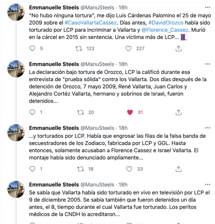 La autora del libro “El Teatro del Engaño”, Emmanuelle Steels, dedicó un hilo a caso de Cárdenas Palomino: