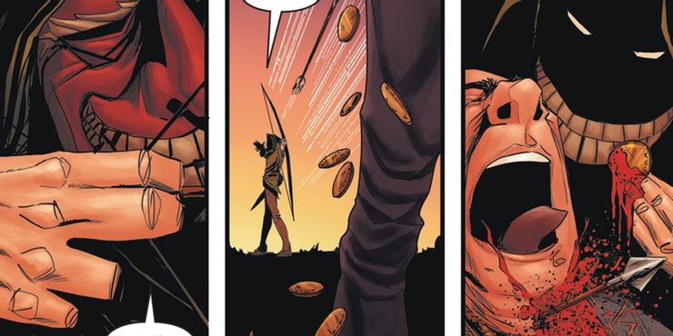 Debido a que Hood aún no masacra a los nobles y otras figuras adineradas como se esperaba, su lúgubre trato a Maid Marian es el foco principal del primer número. Sus fallas como un ser humano decente solo la empoderan, lo que le permite a Marian convertirse en una figura aún más independiente de lo que a menudo se retrata. Esto, a su vez, consolida aún más su característica más crucial: su independencia. Debido al egoísmo de Hood, Marian ha adoptado una personalidad más engañosa, por la que coquetea con el enemigo de Hood en más de una forma, no solo para promover sus propios medios, sino solo porque le interesaría. Entonces, aunque Marian siempre ha sido celebrada por su lealtad, parece que todavía mantiene ese rasgo, excepto que es más leal a sí misma que a cualquier otra persona. Ojalá el próximo número de Nottingham ilustrará aún más esta reinvención de Robin Hoodmitología cuando se trata de matar a miembros de la sociedad de élite.