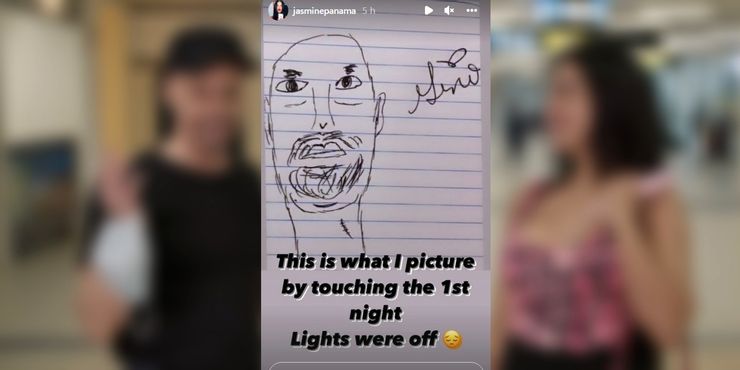 Sin embargo, Jasmine es una mujer con muchos talentos, que todos sus más de 7,790 seguidores han descubierto después de ver sus actualizaciones de Instagram durante el último mes. Jasmine reveló recientemente que le gusta dibujar en su tiempo libre. Y parece que Jasmine también puede hacer caricaturas, ya que decidió dedicar una a su novio amante de la píldora azul. La nativa de la ciudad de Panamá compartió un dibujo de Gino que hizo y escribió: “Esto es lo que me imagino tocando la primera noche.”La caricatura es un Gino calvo con su barba incipiente y sus ojos demasiado juntos en su pequeño rostro. Jasmine parecía molesta porque realmente no podía ver la cabeza de Gino correctamente, ya que mantuvo las luces apagadas para retener el elemento misterioso.