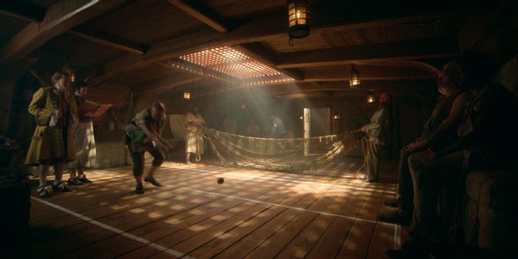 Otra de las comodidades que disfrutan los tripulantes del Revenge en Nuestra bandera significa muerte es una biblioteca de préstamo completamente surtida. Desafortunadamente, debido a las bajas tasas de alfabetización de la época, la única forma en que la mayoría de la tripulación puede disfrutar de la biblioteca es a través de las horas nocturnas del cuento del Capitán Bonnet. El Stede Bonnet real mantuvo una biblioteca considerable, donde pasó la mayor parte de su tiempo leyendo en lugar de supervisar a su equipo. Él, por lo que el registro histórico puede decir, no leía cuentos a su tripulación todas las noches. Incluso si lo hubiera hecho, no podría haberles leído el clásico cuento infantil. pinocho como lo hace en Nuestra bandera significa muerteya que no se publicó hasta mucho después de la muerte del verdadero Stede Bonnet.