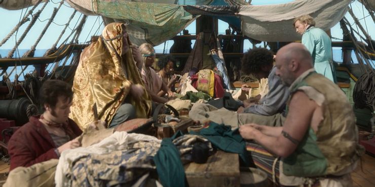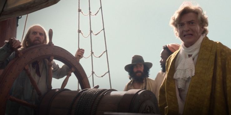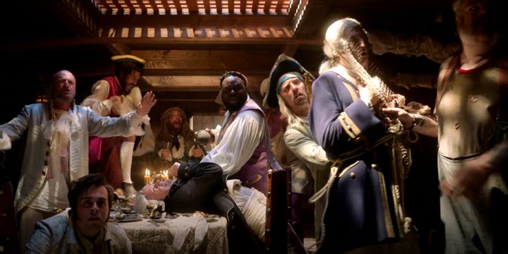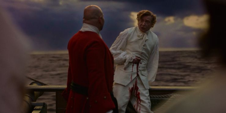 En un momento del episodio piloto de Nuestra bandera significa muertela versión de Rhys Darby de Stede Bonnet se confunde con “una mujer corpulenta en bata de seda” por la Marina británica. Sorprendentemente, esto se basa en un artículo del Boston News Letter que, al informar sobre las actividades del mucho más infame Barbanegra, describió a Stede Bonnet caminando por la cubierta del barco de Barbanegra “en su bata de mañanaEste fue uno de los muchos hábitos que convirtieron a Stede Bonnet en una figura tan cómica como piratas del CaribeEs el Capitán Jack Sparrow a los ojos de los marineros experimentados y los soldados experimentados que encontró.