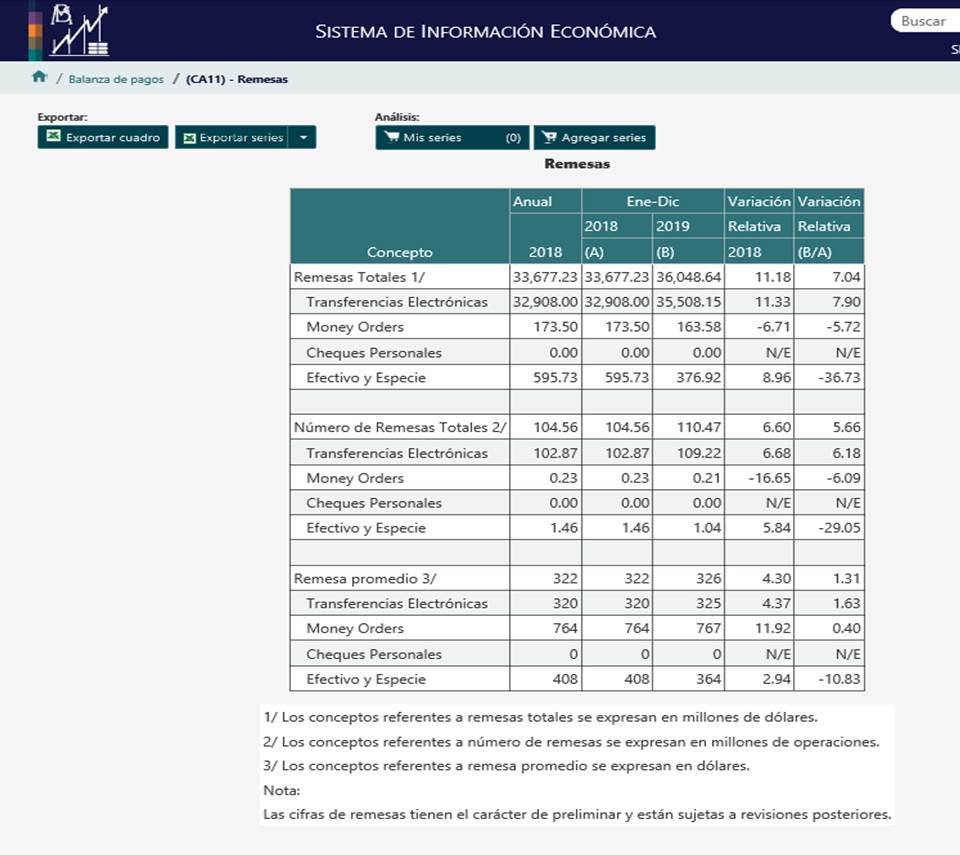 El banco central señaló que las transferencias electrónicas resultaron el medio idóneo para el envío desde el exterior, con 35 mil 508 millones de dólares de enero a diciembre de 2019.