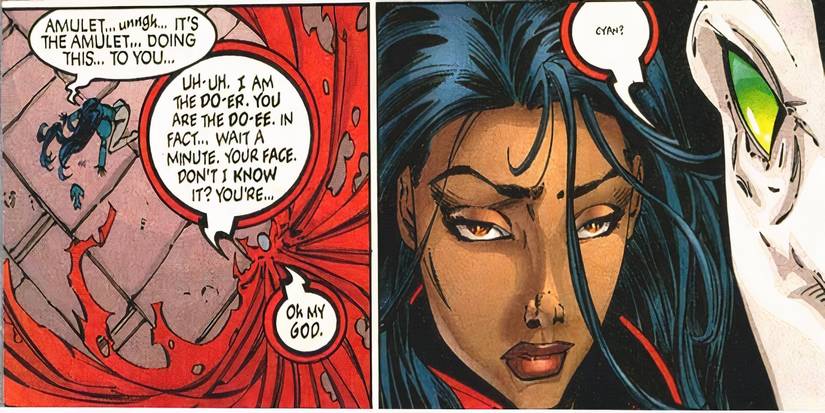 Cuando Cyan comienza a exhibir poderes y presenta su alter ego: Misery