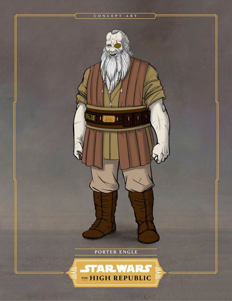 En la primera novela publicada de la Alta República La luz de los Jedi por Charles Soule, Porter Engle fue presentado como un maestro Jedi que había elegido una vida sencilla como cocinero. Trabajando en el puesto de avanzada Jedi en Elphrona, Porter era famoso por su estofado de nueve huevos. Sin embargo, Porter Engle también tenía un pasado mucho más notorio del que rara vez hablaba. En verdad, el maestro fue una vez una leyenda entre la Orden Jedi, ganando el apodo de ‘Blade of Bardotta’.