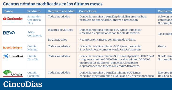 En todo caso, algunas entidades se han desmarcado de este camino. Es el caso de Bankinter, que ha reducido de 1.000 a 800 euros el nivel de ingresos mensuales requeridos para acceder a las ventajas de su cuenta nómina, una de las pocas que aún es remunerada.
