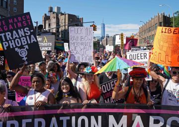 La marcha crítica ha dado paso luego a la principal. También en la protesta oficial se han oído voces críticas. “No quiero que a nadie lo engañen los colores de las calles, los arcoíris brillantes que rodean los anuncios de T-Mobile o de cualquier otra compañía maravillosa, y que piense que somos libres, porque no lo somos”, ha dicho Indya Morre, activista transgénero popular por su actuación en la serie de televisión Pose. “Ver hoy, en el aniversario de Stonewall, las calles atestadas de policía, resulta traumático para algunos de nosotros”. Además de los agentes a pie, se han visto otros de paisano, y varios drones y helicópteros han seguido el desarrollo de los actos desde el aire.