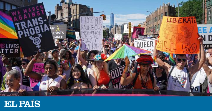 La marcha crítica ha dado paso luego a la principal. También en la protesta oficial se han oído voces críticas. “No quiero que a nadie lo engañen los colores de las calles, los arcoíris brillantes que rodean los anuncios de T-Mobile o de cualquier otra compañía maravillosa, y que piense que somos libres, porque no lo somos”, ha dicho Indya Morre, activista transgénero popular por su actuación en la serie de televisión Pose. “Ver hoy, en el aniversario de Stonewall, las calles atestadas de policía, resulta traumático para algunos de nosotros”. Además de los agentes a pie, se han visto otros de paisano, y varios drones y helicópteros han seguido el desarrollo de los actos desde el aire.
