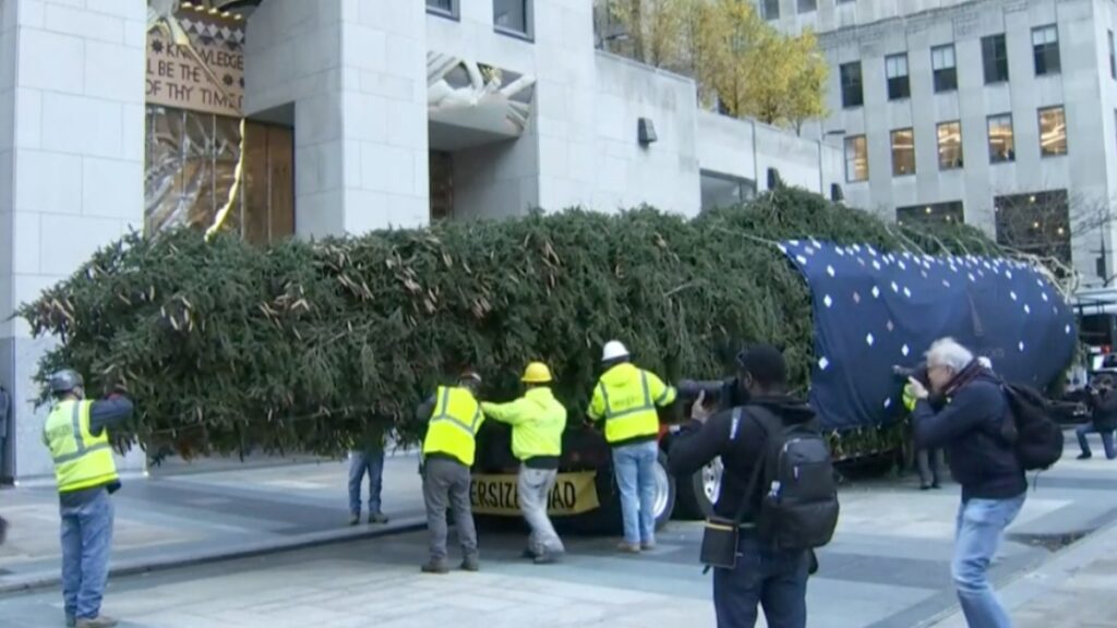 El árbol de 12 toneladas llegó en camión desde el hogar de la familia Price en Elkton, Maryland, la primera vez que proviene de ese estado desde que comenzó la tradición hace 80 años. La ceremonia de encendido está prevista para el 1 de diciembre.