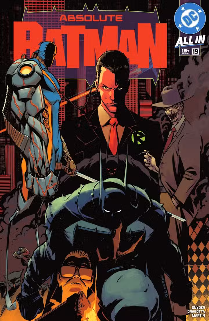 Batman absoluto # 19 También presenta a los Robins, jóvenes héroes reclutados por Joker para actuar como un grupo de trabajo anti-Batman. Deathstroke es su entrenador y la cara pública del equipo, y también les proporciona los trajes mecánicos que los fanáticos han visto en la portada del número 20.