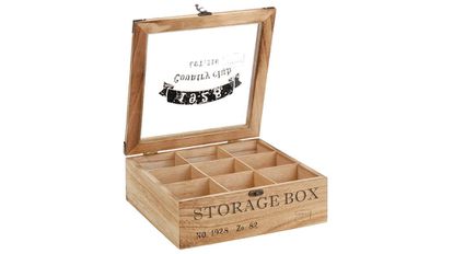 Las cajas de madera son un accesorio clásico y funcional para guardar las bolsitas de té. Esta tiene un diseño rústico y está disponible en dos formatos: con nueve o seis divisiones. Su tapa transparente ofrece una apertura completa para acceder fácilmente al contenido y tiene un seguro metálico para almacenarla sin riesgo de que se abra por accidente. En Amazon tiene casi 2.000 valoraciones y un 4,6 sobre 5 de calificación.