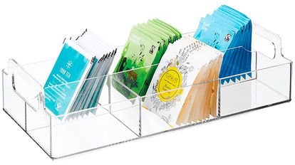 Para quienes prefieren mantener las bolsitas de té almacenadas en cajones o estanterías, este organizador puede facilitarles la vida. Se trata de una bandeja de plástico transparente con seis compartimentos para separar los distintos sabores. Dispone también de asas en ambos extremos para moverla con facilidad y su tamaño compacto (14,5 cm x 30,5 cm x 7,4 cm) lo hace apto para cualquier espacio.