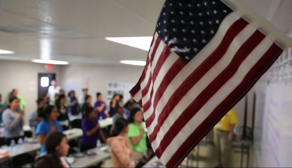 En la clase de lectura del martes, se pidió a los estudiantes que practicasen el Juramento de Fidelidad a la bandera estadounidense en inglés. Muchos lo hicieron con dificultades hasta que los maestros llamaron a uno para que se parase al frente de la clase y ayudase a los demás. Cuando terminó, todos aplaudieron.
