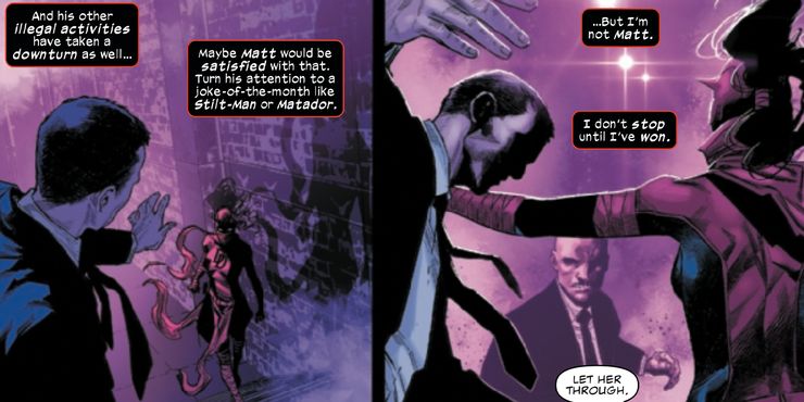 El alejamiento de los villanos individuales también refleja cómo las instituciones rara vez son operadas por una sola persona; más bien, son una red que no se puede derribar de la noche a la mañana. Ver a los villanos como individuos que actúan por separado de los problemas institucionales simplifica demasiado la realidad, y esto es algo de lo que Matt ya ha demostrado ser consciente. Parece que en este punto de su historia de publicación, tanto el personaje como el creador se han puesto al día con esta actitud, y el resultado ha producido una versión mucho más matizada del personaje que finalmente se enfrenta a un desafío importante.