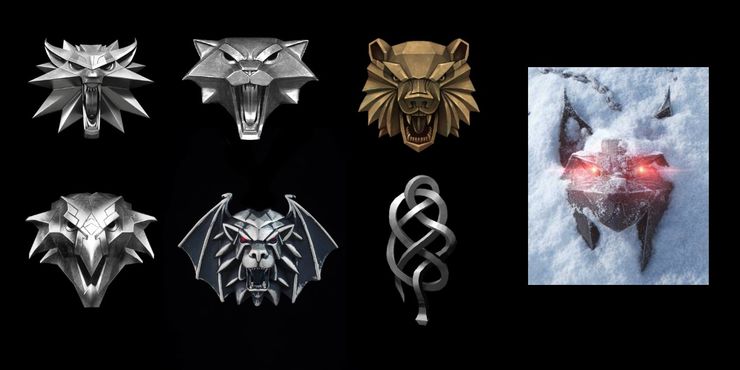 El Brujo los juegos se basan en las novelas de fantasía de Andrzej Sapkowski, y los brujo 3 se desvía de los libros de maneras sorprendentes. Sin embargo, a través de los medios se mantiene la existencia de las Escuelas de Witcher, las cuales se encargan de adquirir, entrenar y equipar a nuevos Witcher. Las escuelas basadas en el material de origen incluyen Wolf (la escuela de Geralt), Cat, Griffin, Bear, Manticore y Viper, y cada una tiene su propio medallón característico. Sin embargo, el medallón resplandeciente que se muestra en la imagen teaser de CD Projekt Red no coincide con ninguna de las escuelas conocidas. Su mayor parecido es con la Escuela del Gato, con sus orejas y bigotes puntiagudos felinos.