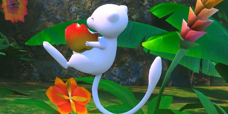 Además de los objetivos opcionales dignos de completar, como tomar fotografías de cada Pokémon y obtener el puntaje más alto posible en cada foto, el objetivo principal del original Pokémon Snap es encontrar a Mew, como se muestra en el breve video de apertura. Para encontrar al escurridizo Pokémon mítico, Todd debe llegar al escenario Rainbow Cloud que se cierne sobre la Isla Pokémon. Pero Rainbow Cloud es un escenario muy simple con solo un “suelo” plano bajo los pies, el cielo estrellado arriba y Mew. Se necesita habilidad para hacer malabarismos lanzando Pester Balls y acelerando lo suficiente para obtener la toma perfecta de Mew en Pokémon Snap. Sin embargo, sigue siendo un escenario desprovisto de la interactividad y el entorno útil que los jugadores disfrutan del resto del juego. Esto se vuelve aún más cuestionable cuando se considera que Mew se encuentra en un área de bosque tropical en la secuencia de apertura, pero en realidad vive completamente separado del resto de la Isla Pokémon.