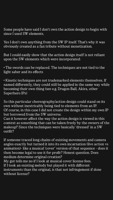 Más tarde, Lorenz compartió un largo mensaje de seguimiento en sus Historias de Instagram después de que algunos usuarios de las redes sociales aparentemente le dijeran al cineasta que no es dueño del diseño de acción ya que involucraba elementos de una propiedad existente como guerra de las galaxias.