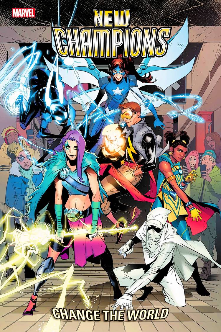Nuevos campeones voluntad #1 Brindar a los lectores la oportunidad de aprender más sobre Liberty, Hellrune, Cadet Marvel y Moon Squire, presentados en una edición de mujer araña de principios de este año. Además, a estos personajes se les unirán algunos aliados adicionales sorprendentes, lo que creará una mezcla ecléctica de poderes y personalidades en la lista de debut.