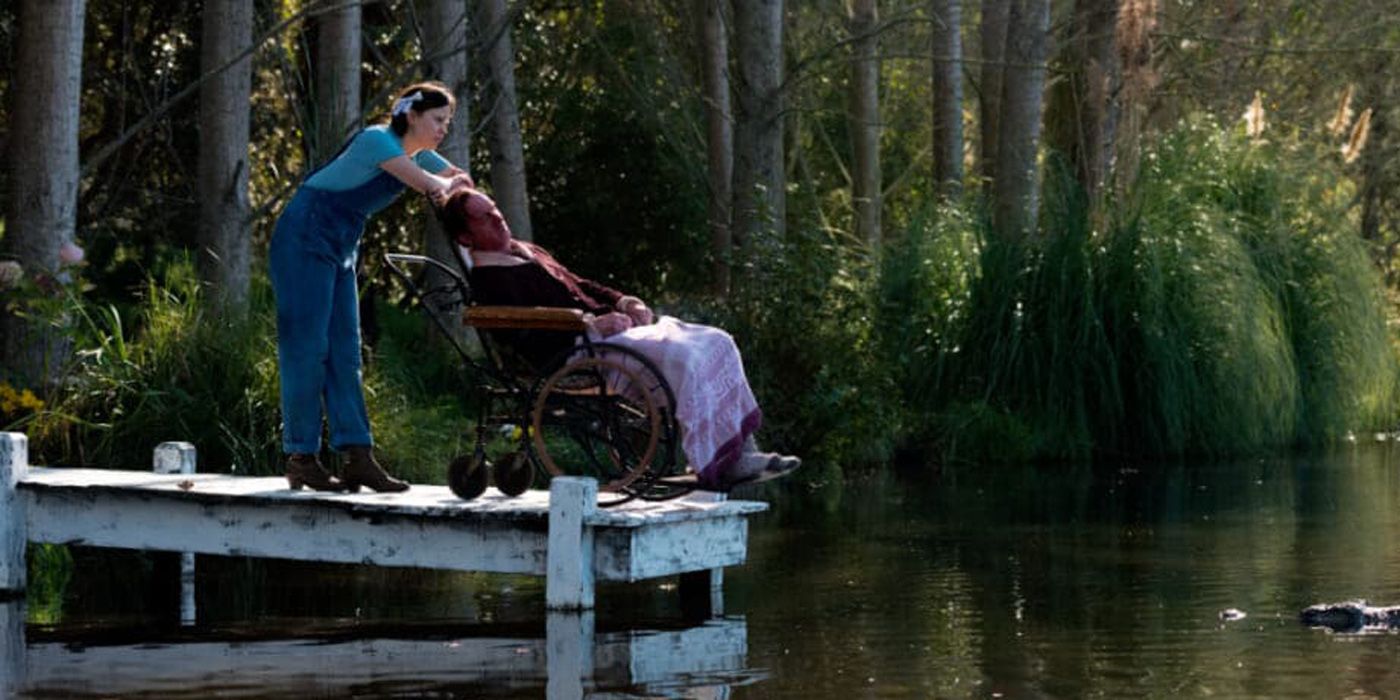 “/> El proyeccionista es el principal interés amoroso de Pearl en todo momento. Perla, pero él también sufre un destino espantoso a manos de ella. Mientras Howard está en el extranjero luchando en la Primera Guerra Mundial, Pearl comienza una aventura con un proyeccionista en su cine local. Sin embargo, el proyeccionista comienza a sospechar de Pearl después de que ella mata a su madre, y su extraño comportamiento hace que él deje a Pearl. Esto molesta a Pearl, quien le impide irse apuñalándolo con una horca. Luego empuja su cadáver y su coche a un estanque, donde su caimán se lo come.