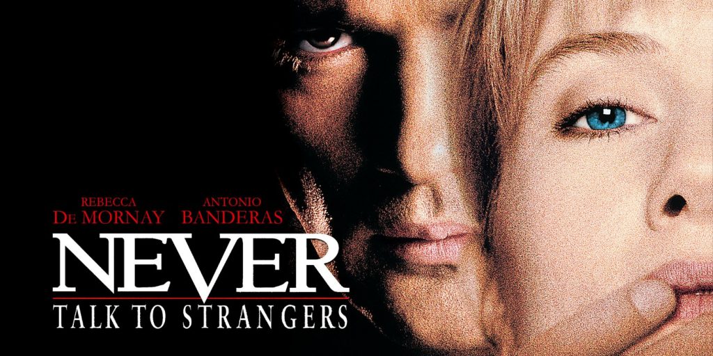 Nunca hables con extraños estrellas Rebecca De Mornay (Jessica Jones) como la Dra. Sarah Taylor, una psicóloga que conoce al encantador y guapo Tony. Ella ignora el consejo del título de la película, ya que Tony es interpretado por Antonio Banderas, y la pareja se embarca en una relación picante. Sarah luego comienza a recibir regalos retorcidos y comienza a sospechar que Tony la está acosando. Mientras Nunca hables con extraños no es lo peor del ciclo de thriller erótico de los 90, es uno de los más aburridos. De Mornay y Banderas hacen lo que pueden para inyectarle algo de vida, y se comprometen con las escenas de sexo obligatorias, pero la película es bastante plana. Termina con un giro interesante que reformula la historia, pero los espectadores inteligentes podrán ver hacia dónde se dirige la historia.