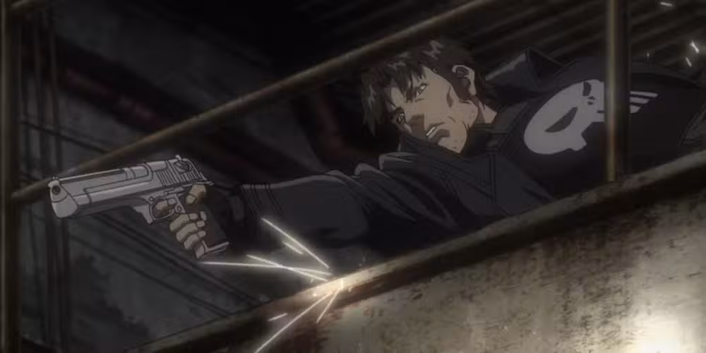 En total, Punisher de Reedus es solo una parte del anime durante diez minutos. Probablemente podría haber sido escrito por completo, pero le da una inyección de frialdad muy necesaria. A pesar de los diversos papeles de acción que ha asumido, nunca antes me había imaginado a Reedus como Castle, pero pensé que hizo un gran trabajo con eso.