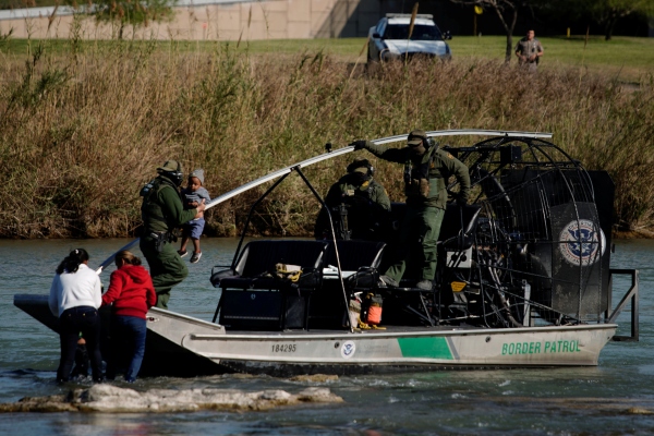 Agentes fronterizos estadounidenses en redada por el Río Bravo. Foto: Reuters