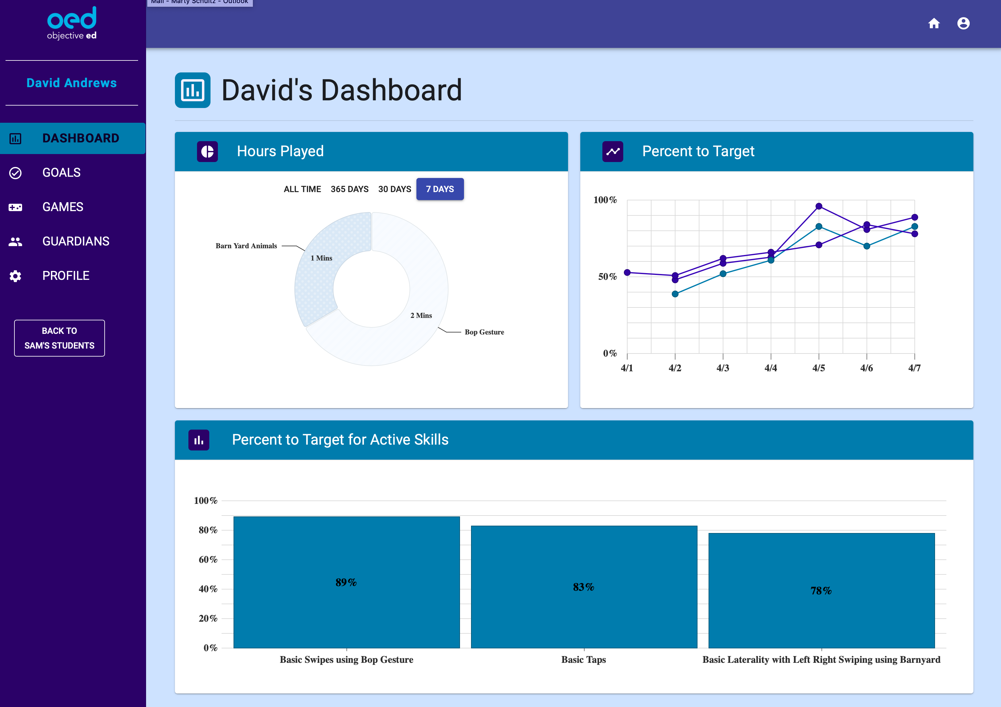 Y dado que el tiempo de los maestros es limitado y los instructores capacitados en el aprendizaje de personas con problemas de visión son escasos en el campo, estos métodos obsoletos también son difíciles de atender a las necesidades individuales de los estudiantes. Por ejemplo, un niño puede ser bueno en matemáticas pero carece de habilidades de direccionalidad. Debe elaborar un “plan de educación individual” (IEP) que explique (entre otras cosas) esto y qué pasos deben tomarse para mejorar, luego haga un seguimiento de esas mejoras. ¡Lleva mucho tiempo y es difícil! La idea detrás de ObjectiveEd es crear juegos que enseñen estas habilidades básicas y una plataforma para rastrear y documentar el progreso, así como ajustar las lecciones al individuo.