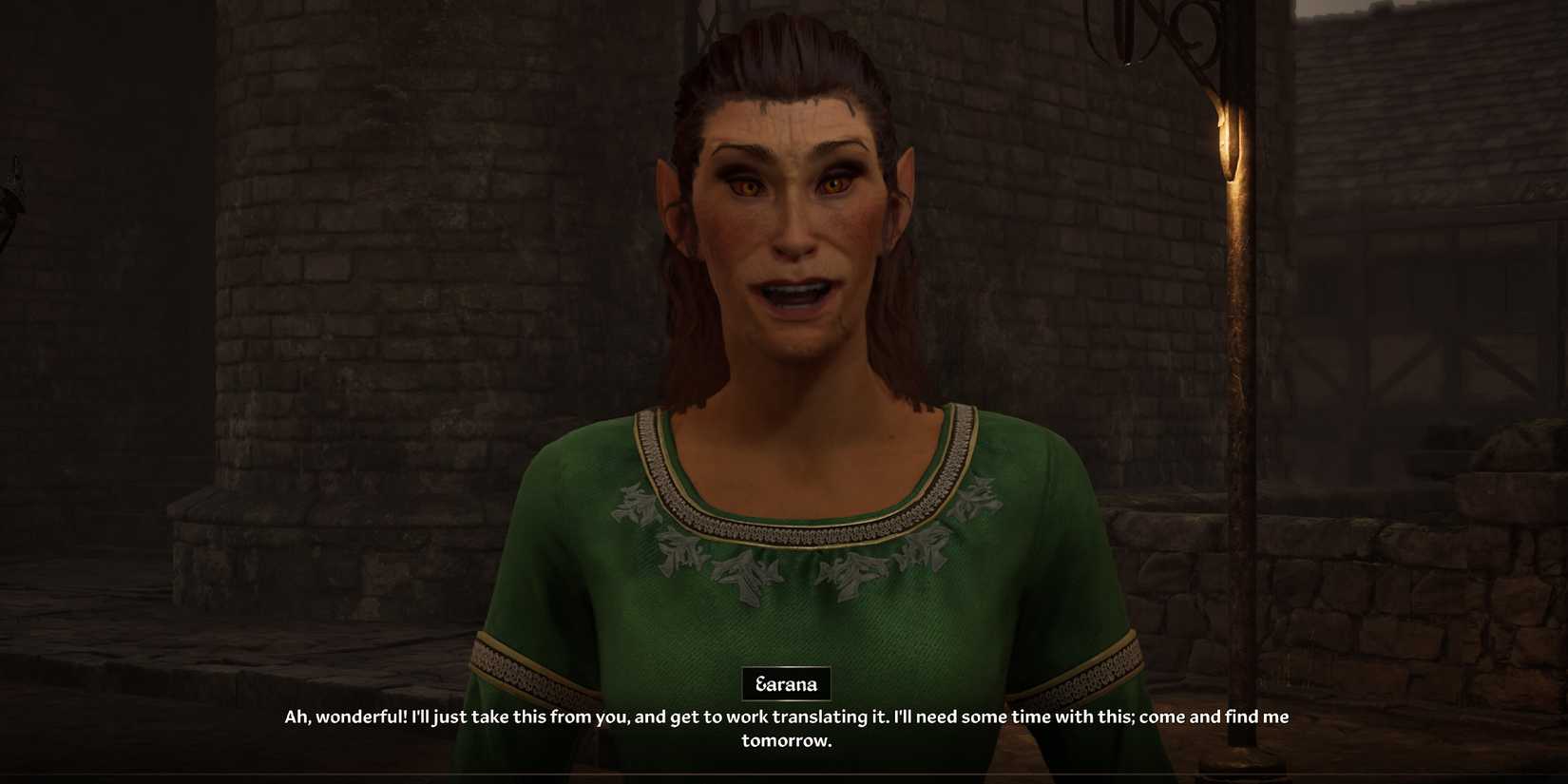 Dar el libro a Earana por adelantado activará la misma secuencia de eventos con respecto a Cloud Top. Earana se irá, traducirá el libro y regresará con las instrucciones para activar el pilar en la cima de la nube. Ya sea que Earana obtenga el libro primero o segundo, siempre y cuando lo reciba, podrás adquirir el dedo del hechizo de la montaña. Recibirás un punto de fama por dar el libro a Earana.