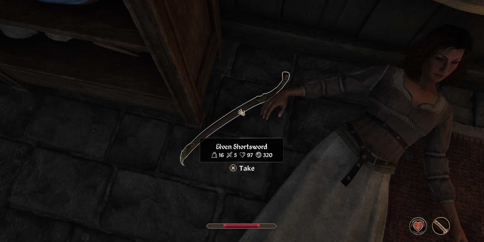 En los niveles más bajos, sin embargo, el puesto de lado con Arnora puede tener más sentido. Su espada corta depende de tu nivel, y si te diriges a Bruma temprano, no valdrá tanto como el equipo de Tyrellius. Independientemente de su nivel, puedes recoger la armadura de maíz y una espada larga de su cadáver. De cualquier manera, el botín que obtienes de Tyrellius o Arnora debe exceder el valor de lo que hay en el cofre mismo.