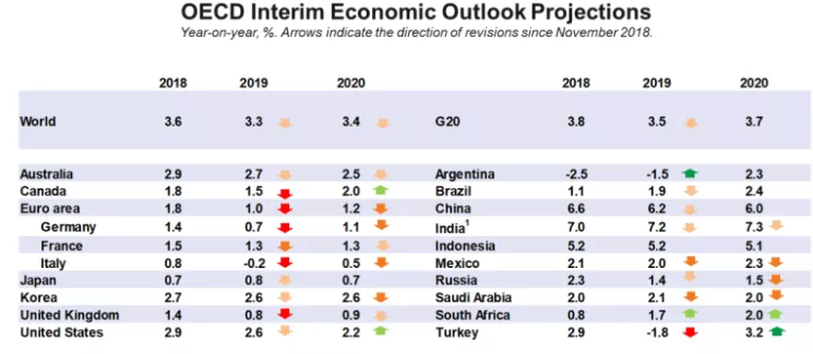 Este miércoles, la Organización para la Cooperación y el Desarrollo Económicos (OCDE) redujo sus expectativas de crecimiento para México, de 2.5 por ciento a 2 por ciento para 2019, y de 2.8 por ciento a 2.3 por ciento para 2020.