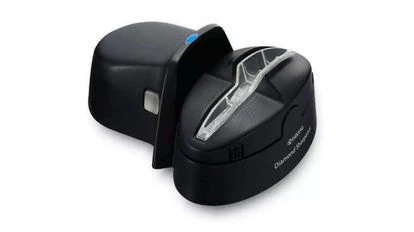 Este otro afilador eléctrico (mediante cable de red) incorpora dos pares de piedras afiladoras de cerámica en los que se pueden llevar a cabo dos operaciones simultáneamente. Dispone de dos años de garantía, una carcasa para guardarse de forma correcta y una funda que protege la afiladora contra la suciedad.