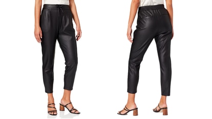 Los pantalones de cuero o efecto piel serán unos de los grandes triunfadores de la temporada otoño-invierno. Este modelo de Vero Moda conjuga ese material con un diseño sobrio y discreto que lo hace perfecto para incluir en los looks de oficina. De tiro alto y corte ligeramente suelto, disponen de una cintura elástica y un adorno en forma de lazo en la parte frontal. Con una largura hasta el tobillo, se pueden combinar con zapatos de tacón o planos y ofrecen múltiples opciones para crear distintos looks elegantes o informales en función de las necesidades.