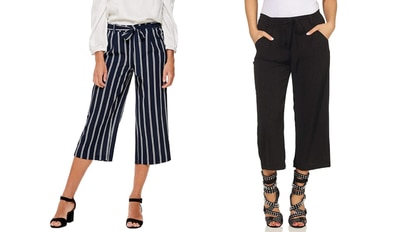 Un pantalón que se adapta al armario de quienes quieren apostar por la comodidad con un toque chic. Además, su cintura alta, con lazo, y la pernera ancha y corta sienta bien a todo tipo de siluetas. Está confeccionado en una mezcla de poliéster, viscosa y elastano y se puede elegir entre seis colores como granate, rosa, verde, azul o un estampado de cuadros. También es posible optar por una amplia variedad de tallas: de la 36 a la 48.
