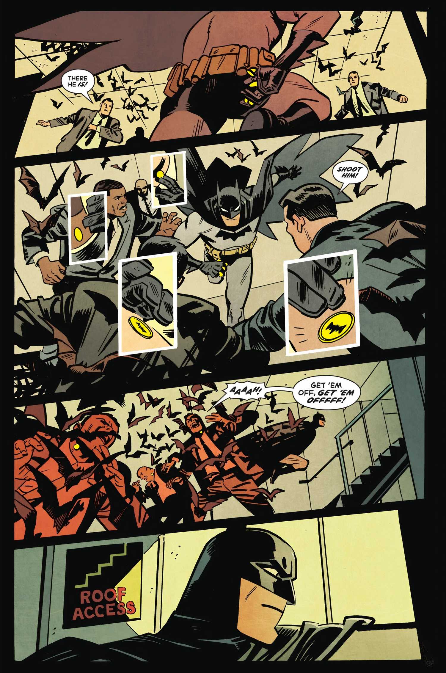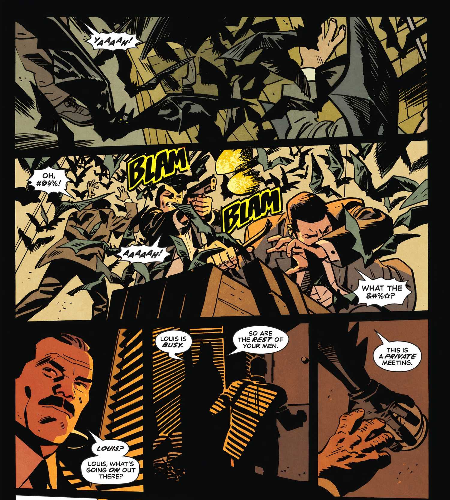 Esta idea realmente me sorprendió durante mi lectura de Batman y Robin: año uno #4 por Mark Waid y Chris Samnee. Específicamente, hay un momento en el que Batman quiere un uno a uno con el nuevo señor del crimen, el general Grimaldi, pero los cuartos del general están vigilados. Entonces, ¿qué hace Batman? Emite un contenedor de murciélagos vivos a la puerta de Grimaldi como una distracción.