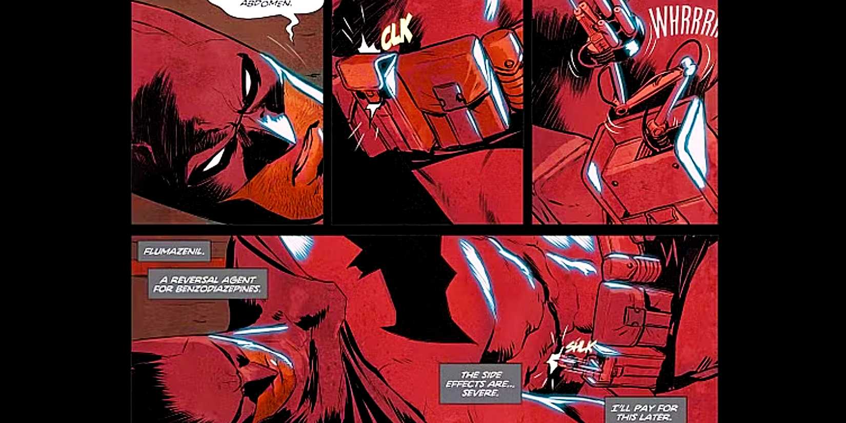 En Cómics de detectives #1094, el autor Tom Taylor y el artista Mikel Janín traen el cinturón de servicios públicos a la era moderna de la IA. En la segunda página, un Batman lesionado, incapaz de moverse, utiliza un comando de voz para activar un brazo mecánico asistido por computadora desde su cinturón de servicios públicos. Este brazo le inyecta flumazenil, un antídoto que contrarresta los efectos sedantes de las benzodiacepinas. Claramente, sin la funcionalidad automatizada del cinturón de servicios públicos, Batman no habría podido administrar el antídoto mismo y probablemente habría sucumbido a la inconsciencia.