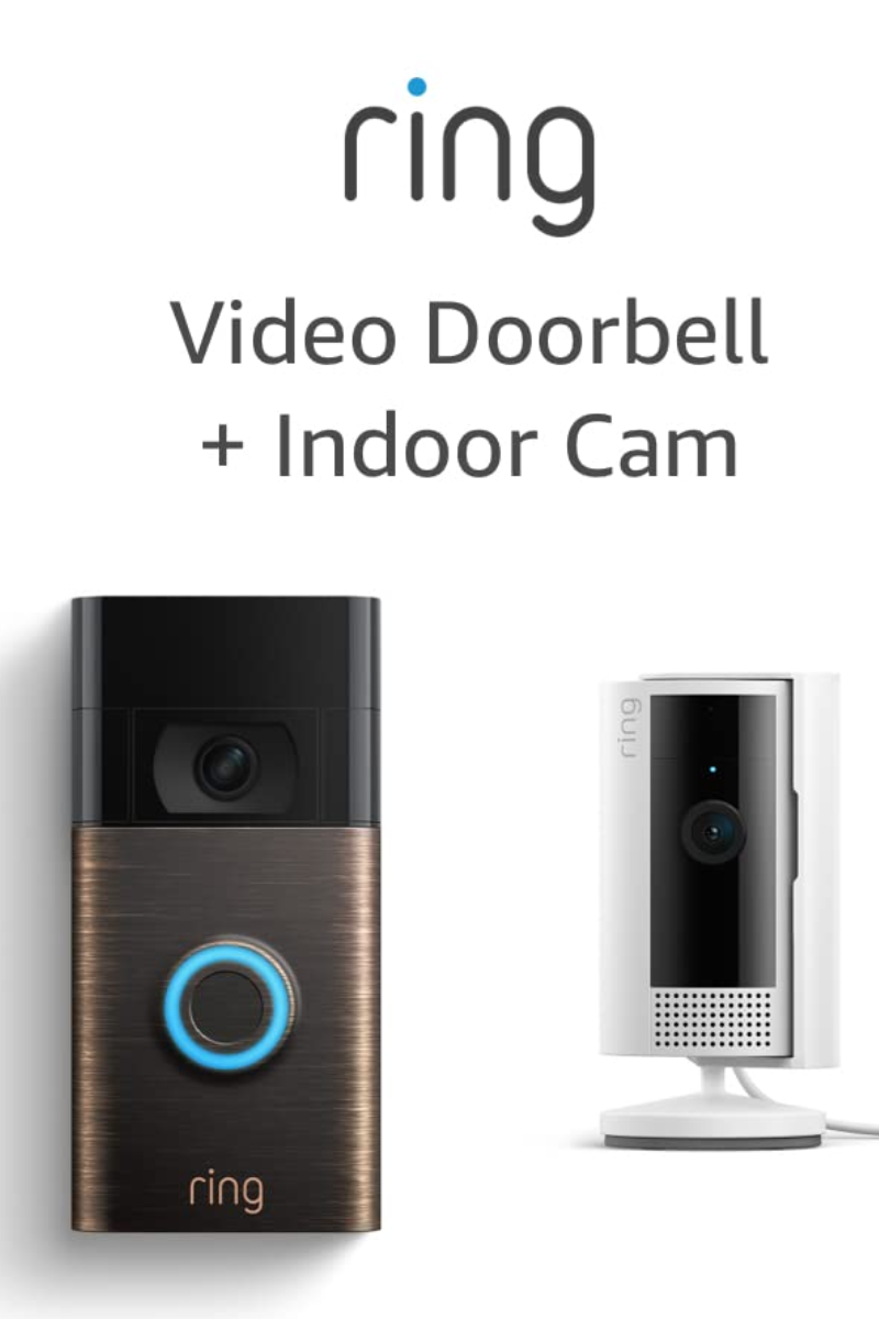 Ring Video Doorbell con la nueva cámara interior Ring es un paquete que actualmente está a la venta por $ 80 para Prime Day. Esta nueva versión del timbre ha mejorado la detección de movimiento, las zonas de privacidad, la privacidad del audio y una visión nocturna más nítida. El timbre tiene video HD de 1080p y le permite escuchar y hablar con los invitados en su puerta desde su dispositivo móvil. La cámara interior tiene vídeo HD de 1080p, visualización en vivo y visión nocturna en color.