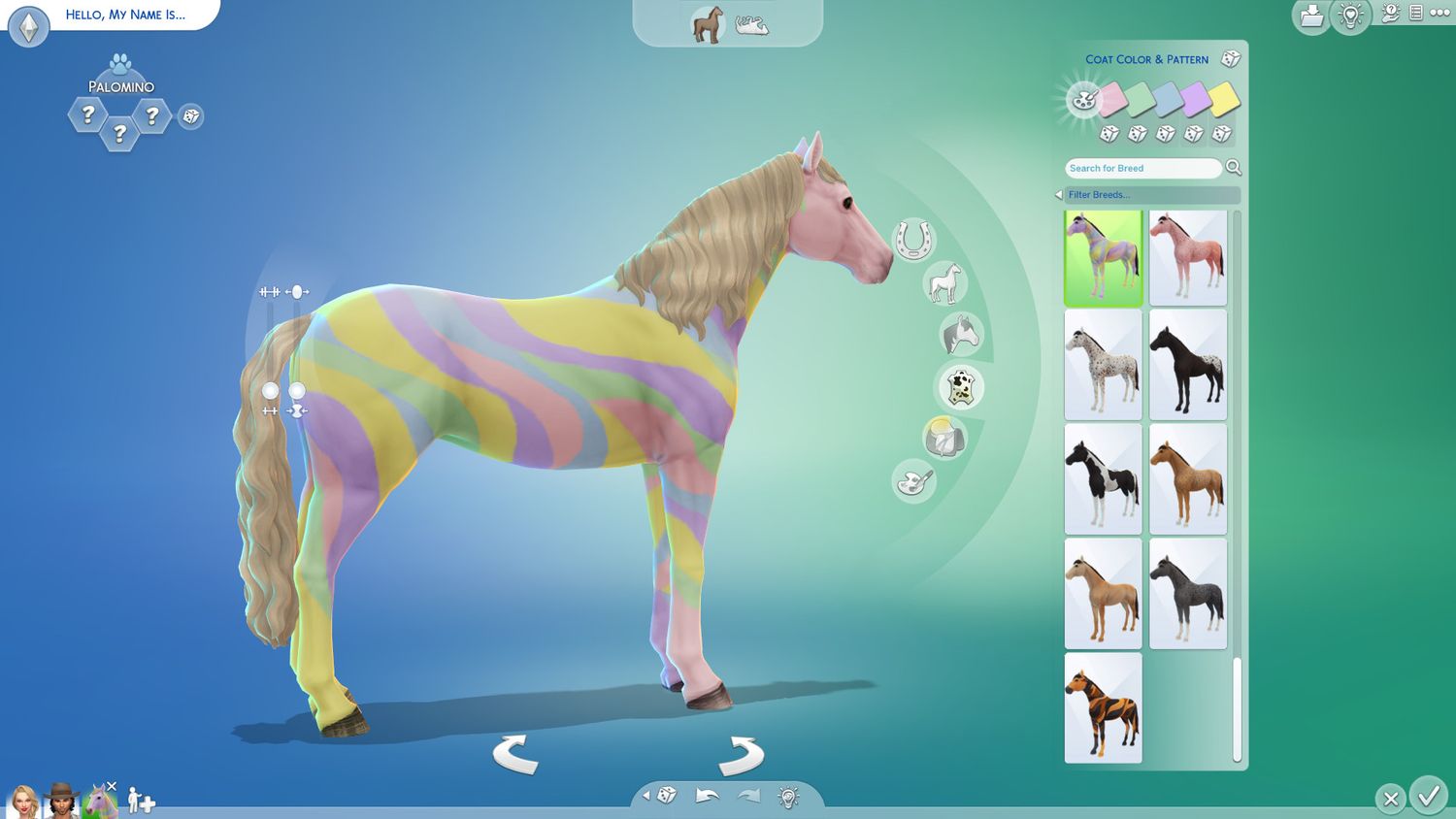 la cosa mas grande Los Sims 4 Rancho de caballos trae a CAS es la creación de caballos, que funciona como un cruce entre diseñar mascotas y hombres lobo. Los jugadores pueden elegir entre más de 30 razas como punto de partida e inclinarse hacia paletas realistas o caprichosas tanto con su abrigo como con sus accesorios, dibujando libremente sobre ellos si lo desean en el Modo Pintura; los corceles incluso pueden adornarse con un cuerno de unicornio, sin embargo, no ofrece habilidades mágicas reales similares a Los Sims 3La versión de la criatura. Se ofrecen 11 rasgos para el animal, con opciones como Agresivo, Desafiante, Suave y Amigable.