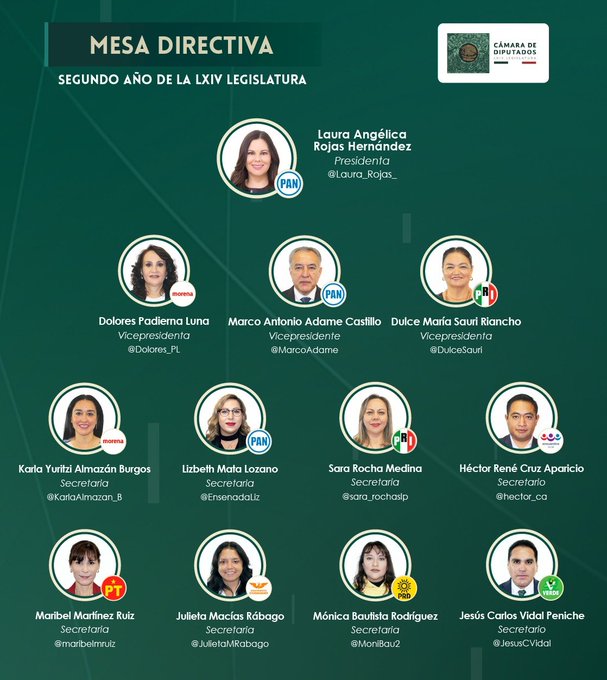 Luego de un periodo de crisis y enfrentamientos políticos entre las fuerzas parlamentarias por la retención de la presidencia de la Cámara de Diputados, Laura Angélica Rojas Hernández, diputada del Partido Acción Nacional, encabezará ese órgano legislativo, en el que prometió hacer una conducción absolutamente institucional e imparcial.