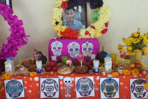 En el centro del altar colocaron la fotografía de Alberto Donis, además de sus bebidas y alimentos favoritos e incluyeron flores de muerto, como cempasúchil y cresta de gallo.