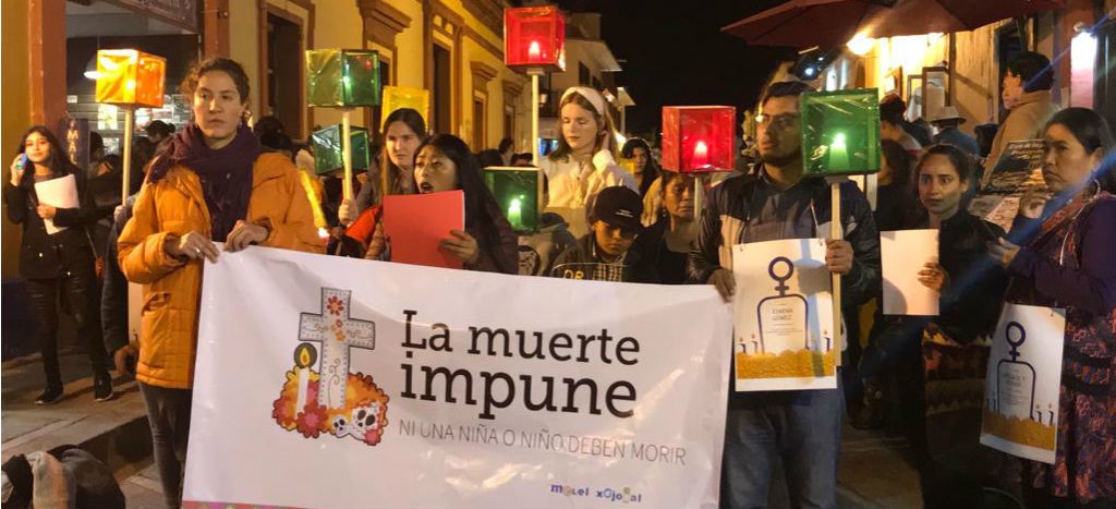 En el marco de la celebración del Día de Muertos, en la ciudad de San Cristóbal de Las Casas, niños, niñas y adolescentes, junto con sus familias e integrantes de la organización Melel Xojobal, realizaron una ofrenda y una marcha fúnebre por las calles de la ciudad, para recordar a 57 menores edad que han sido víctimas de feminicidio, 24 de ellas indígenas tsotsiles y tzeltales.