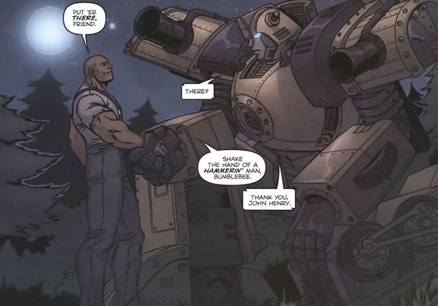 “/> La obra de arte de Guidi cobra vida en las páginas de Transformers: Evoluciones Corazones de Acero #1, donde un personaje llamado John Henry, un hombre que empuña un martillo, se topa con la revelación de que un taladro de vapor aparentemente ordinario es, de hecho, un robot extraterrestre llamado Bumblebee. A medida que se desarrolla la historia, Henry y Bumblebee no tardan en encontrarse con Decepticons hostiles disfrazados de tanques, trenes y motores mecánicos, poniendo en marcha el emocionante y lleno de suspense que les espera.