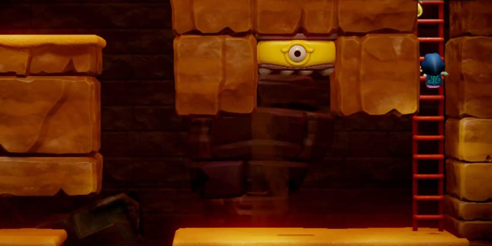 La leyenda de Zelda: Ecos de sabiduría‘s Platboom es un peligro de mazmorra de desplazamiento lateral que es similar a un Thwomp del mario franquicia, golpeándose para aplastar a cualquiera que pasara por debajo antes de volver a subir lentamente a su lugar de descanso elevado. Las aplicaciones de esta amenaza como una forma de infligir daño a los enemigos son obvias, lo que permite golpearlos con fuerza. Sin embargo, realmente brilla como opción de movimiento, ya que Zelda puede colocar un eco Platboom, saltar encima y permitir que la eleve a un área de mayor elevación.