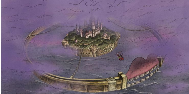 ladrido de suspenso originalmente era una isla que luego se convirtió en Una piezaEl barco pirata más grande del mismo nombre. También sirve como la extensión del tema espeluznante de The Florian Triangle, donde los Sombreros de Paja se encuentran por primera vez y reclutan al músico pirata no-muerto Brook.