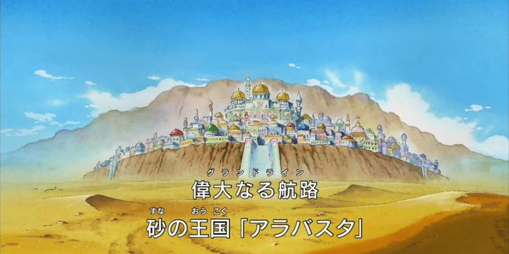 Se revela que el desierto Reino de Arabasta, gobernado por el rey Nefertari Cobra, está manipulado por el sindicato del crimen Baroque Works, que usó propaganda para poner a la gente del reino en contra de la familia real. Al asociarse con Nefertari Vivi, una princesa de Arabasta, los Sombreros de Paja tienen como objetivo restaurar el Reino a su gobernante legítimo Nefertari Cobra.