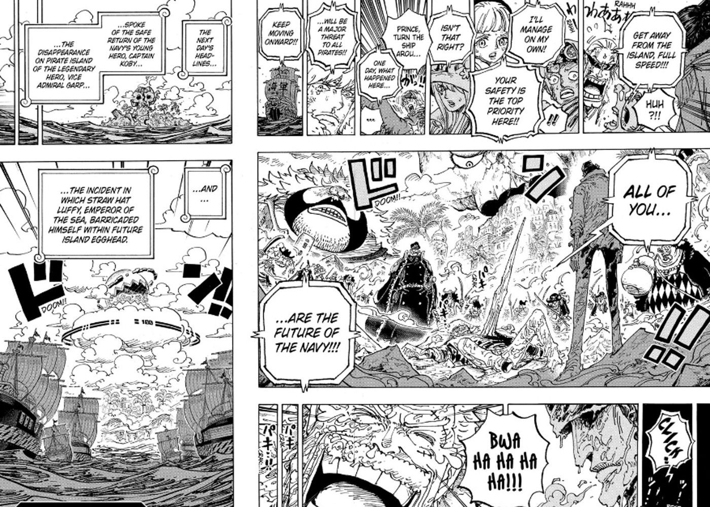 En el capítulo 1088, traducido por Stephen Paul, la batalla entre los Marines y los Piratas de Barbanegra en Fullalead llega a su sorprendente conclusión cuando la Marina se ve obligada a huir, dejando atrás a Garp. Si bien Garp es un luchador increíblemente poderoso, los abrumadores números en su contra, así como la grave herida que sufrió a manos de Shiryu, pasaron factura. Si bien pudo derrotar a Aokiji al principio de la pelea, el ex almirante y actual capitán del Titanic de la tripulación de Blackbeard pudo recuperarse y finalmente atravesar a Garp con hielo, congelándolo. Esto significa que Garp está en manos de su enemigo en un destino irónicamente similar al que sufrió su nieto Ace en Marineford.